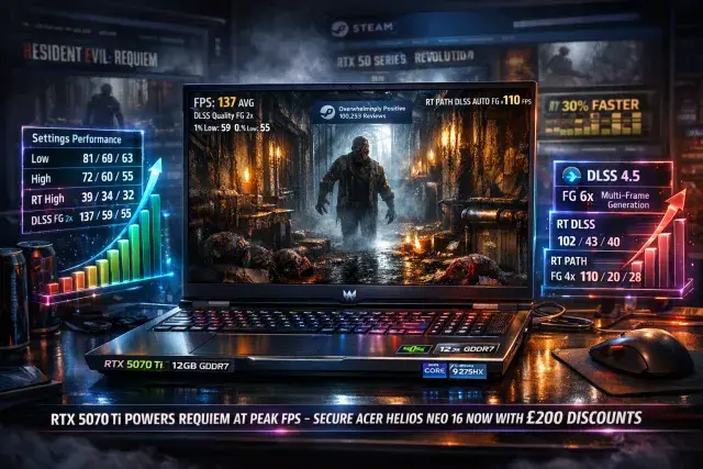 Resident Evil: Requiem has exploded onto Steam with Overwhelmingly Positive reviews, captivating gamers with its atmospheric horror. To experience its ray-traced shadows and path-traced lighting at peak immersion, powerful hardware is essential—especially on laptops like the Acer Helios Neo 16 we tested, delivering top-tier performance without a desktop.